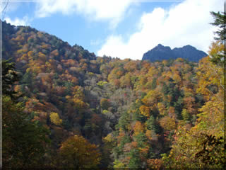 この日は朝から飯盛山に登っていて、そのまま午前中に帰る予定でした。ところがこの日、午後に予定していた仕事が翌日に延期との連絡が携帯に入りまして、それならばということで紅葉の時期にぜひ一度行きたいと思っていた山梨の紅葉の名所、西沢渓谷にそのまま向かうことにしたのでした。