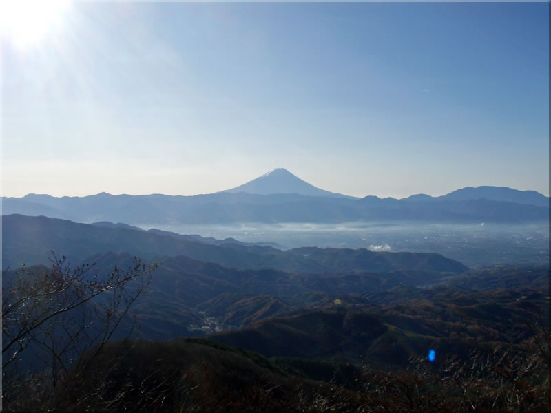 ところどころ見通しの良い場所があり、後ろを振り向くと富士山がきれいに見えていました。ただしこの時間は逆光になってしまい、あまりきれいには撮れませんでした。