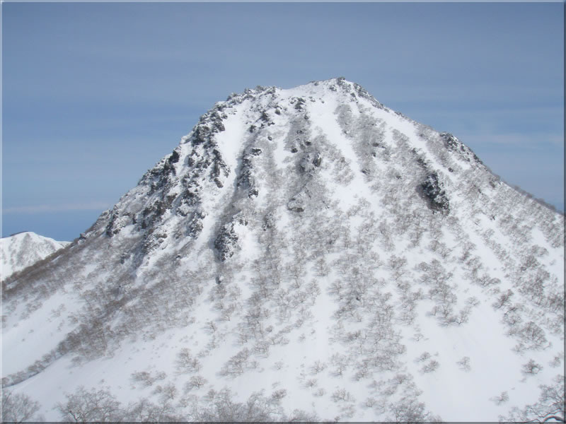 高妻山、乙妻山をズーム。一度ぜひ滑りに出かけてみたいと思いつつ、なかなか実現出来ません。