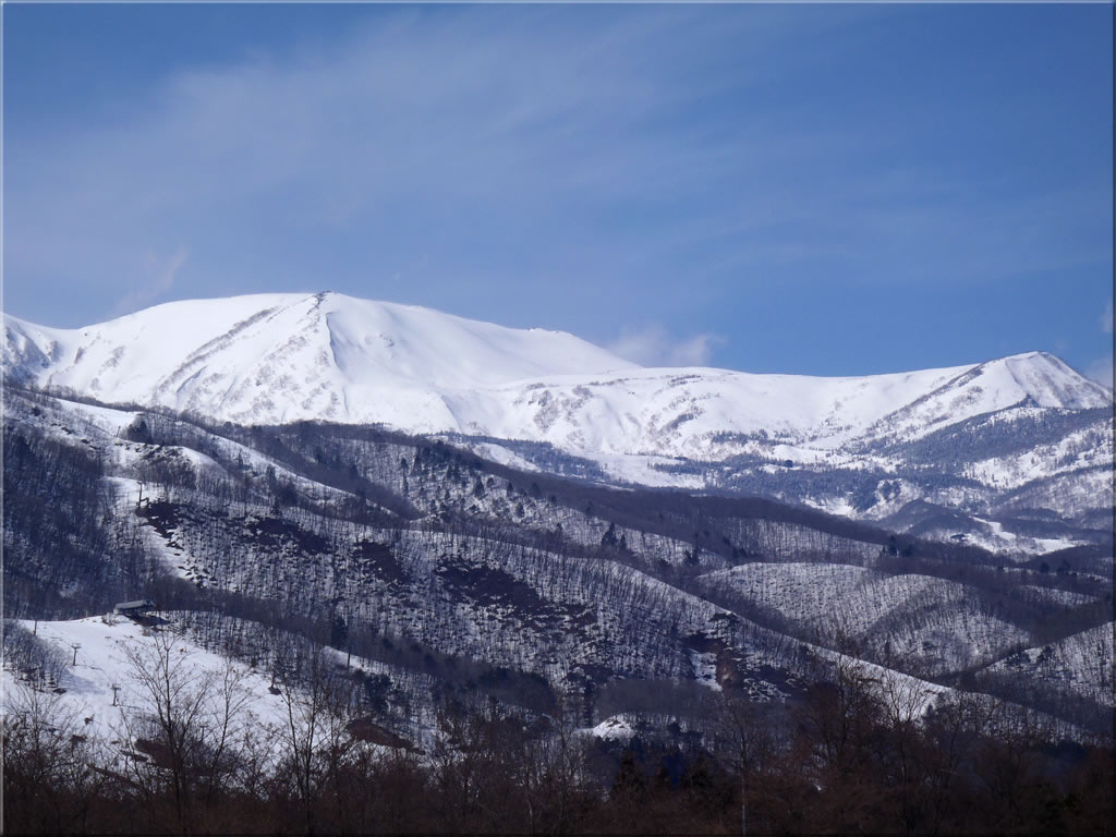 次の写真は帰る途中に振り返って撮ったスキー場の様子。春スキーに最高の日となりました。