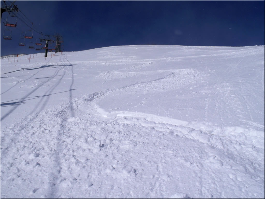 その後この下のゲレンデも滑ってみたのですが、新雪は少なくかりかりのバーンのままのところも多く、失敗でした。
