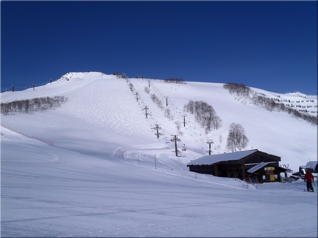 風で多少パック気味ですが、上部以外は底付きもせず楽しめました。続いて黒菱ゲレンデを滑ってみます。