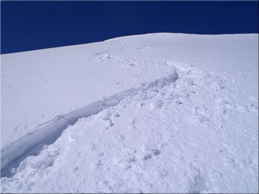 次の2枚は登り返しの途中で撮影した先ほどの斜面の様子。