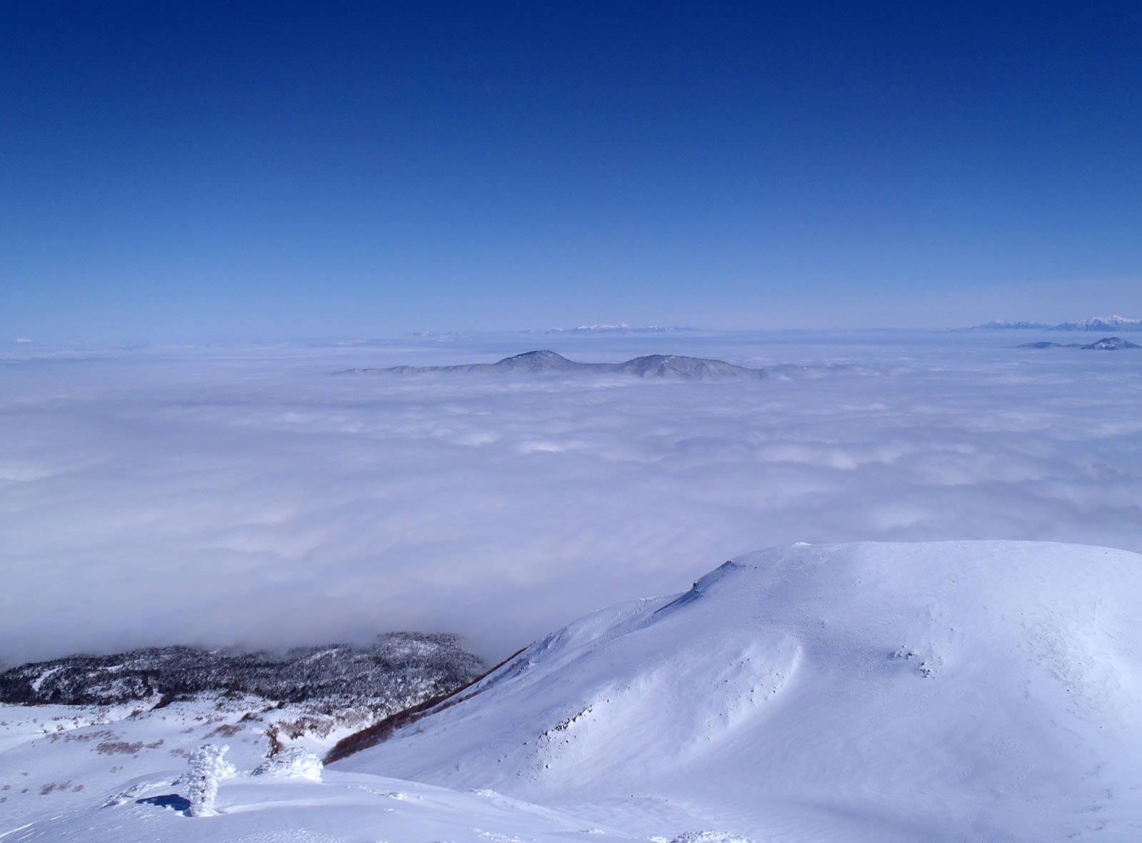 13時54分、剣ヶ峰山頂到着。今日の一番乗りです(^^)。風はそれほど強くなく、日射しもぽかぽかと暖かく、山頂で休憩していてもあまり寒くありません。