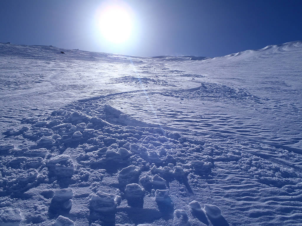 雪ですが、全体的に表面はパック気味ですが、ターンすると気持ち良く削れてくれます。底付きすることはありませんでしたので、おそらく20cm以上は吹きだまっていると思われます。