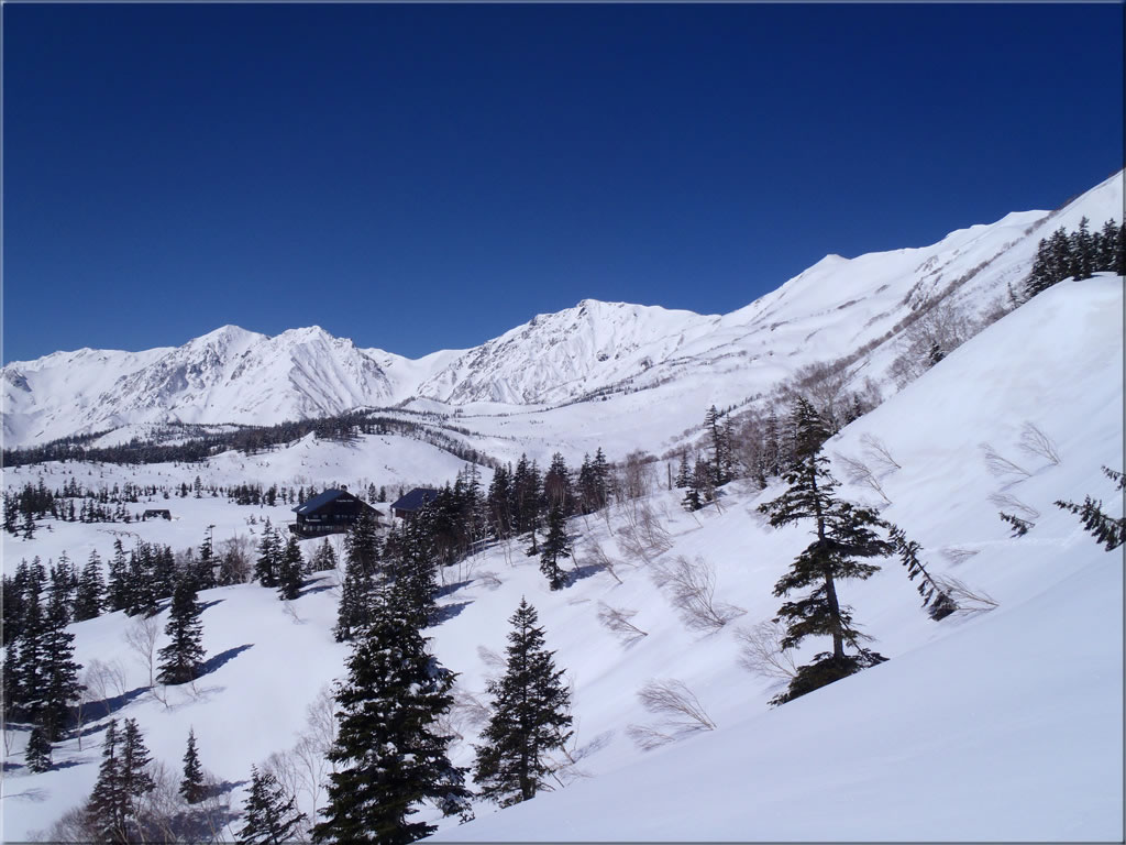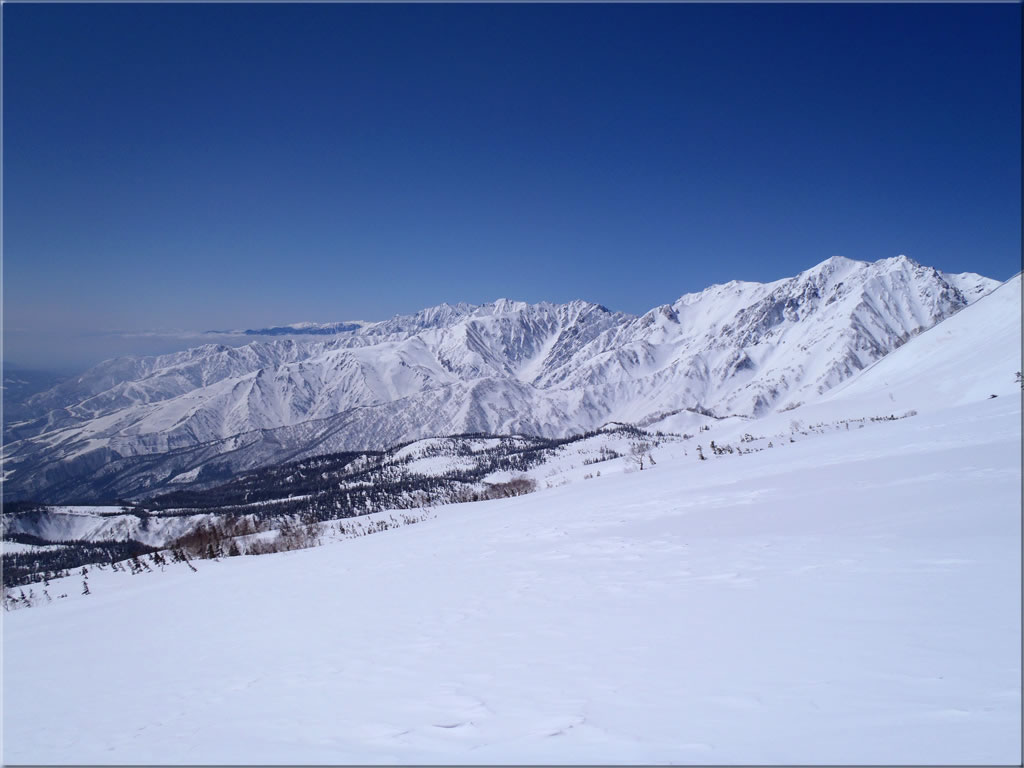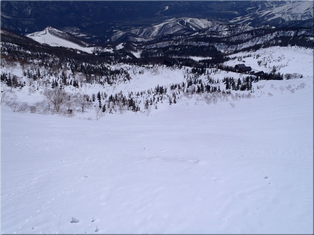 目の前に白馬乗鞍岳の広大な東斜面が広がります。