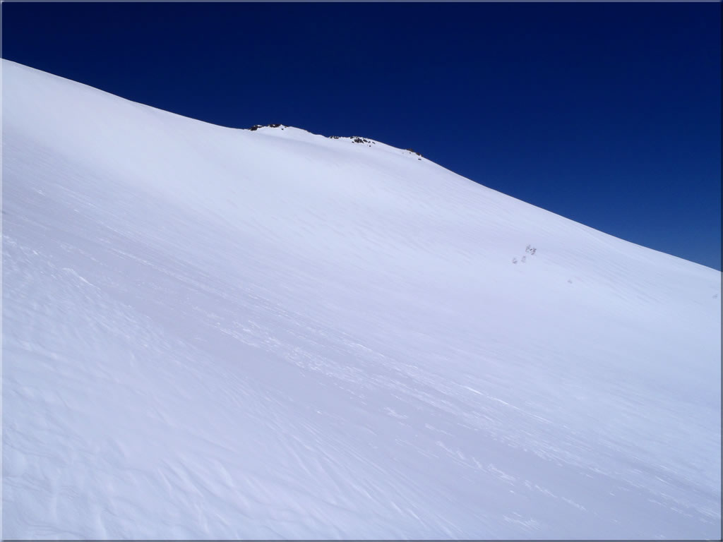 斜度がゆるむと雪は一気にさらさらとなります。ただ風もそれなりに出てきました。