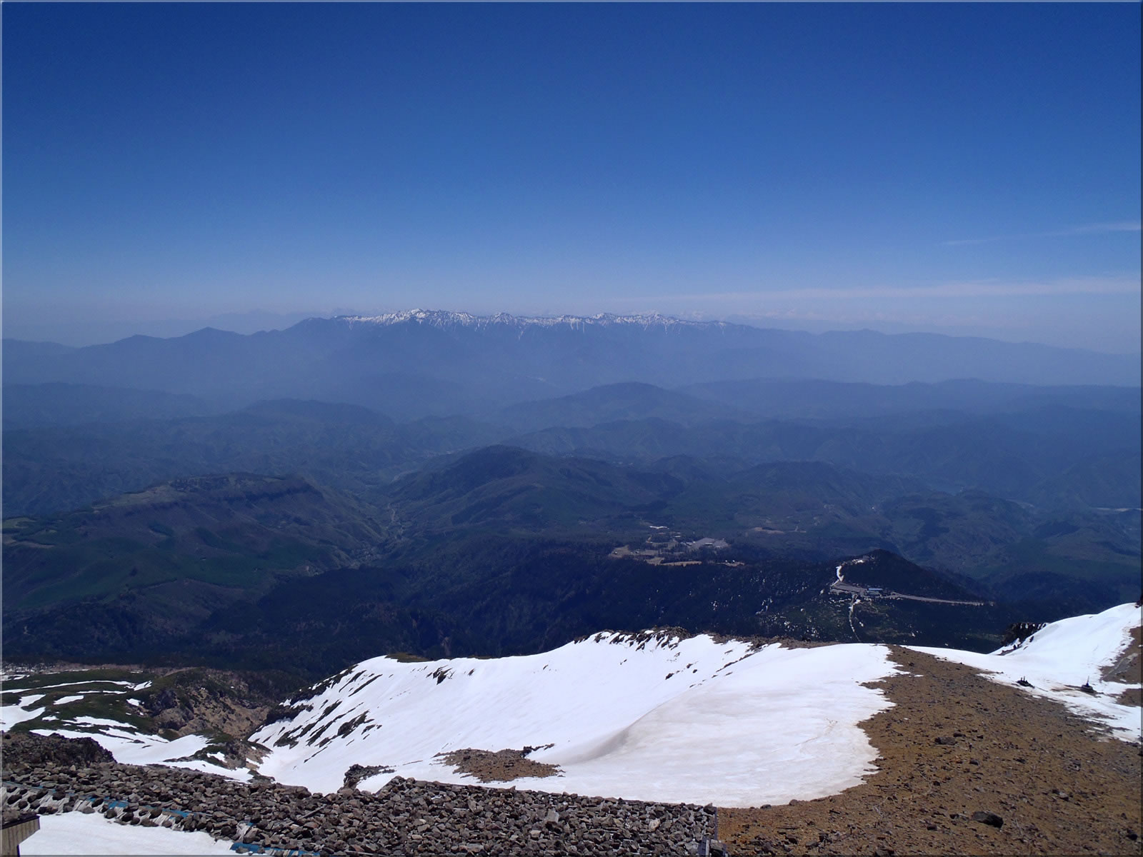 乗鞍岳をズーム。その向こうに槍穂高が見えています。