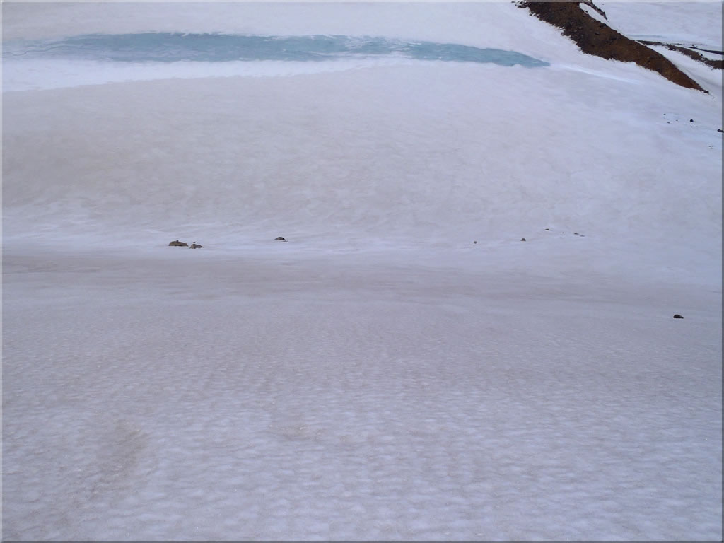 下の方は少しゆるんできていました。では続いて2の池に向けて斜面を滑り降ります。