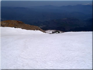 登山道がほぼ雪で覆われたのは7合目の小屋に到着する少し手前からでした。昨年と比べてここまでの残雪は少し少なめです。