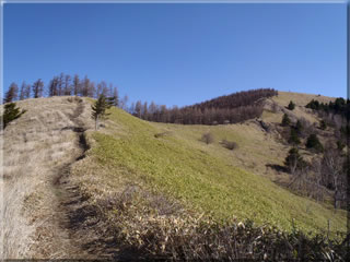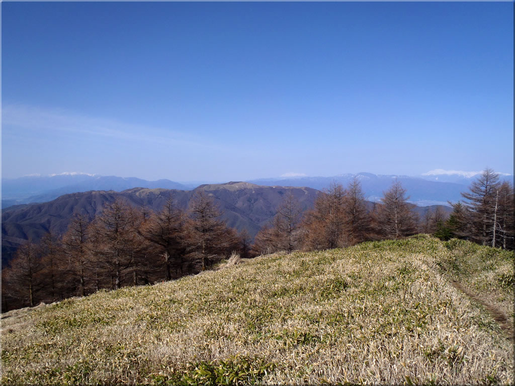 山頂でしばらく休憩しますが、ぜひ山頂近くからの北アルプスの展望を見てみたいと思い、登山道をもう少し美ヶ原方面に進んでみます。