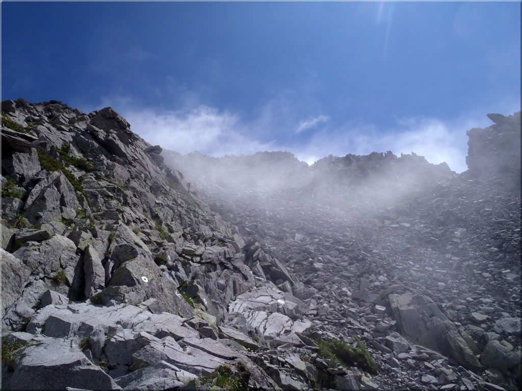 この先、厳しい登りが延々と続きます。鎖が無く、手がかりを探しつつよじ登る岩場も多々ありました。