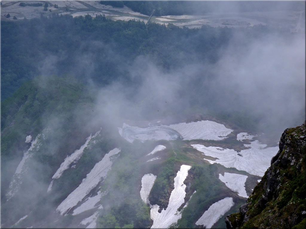 山頂で2時間以上粘りましたが(^^;、状況はほとんど変わらないため、諦めて12時37分、同じコースを下り始めます。