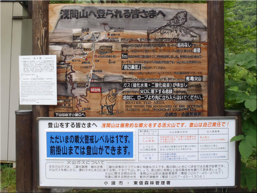 今年4月以降、浅間山の噴火警戒レベルがレベル1と最低に引き下げられ、前掛山まで登ることが出来るようになったと言うことで、レベルが上げられないうちに是非登ってみたいと思い、この日早朝から登りに出かけて来ました。