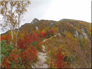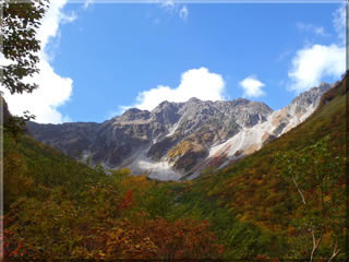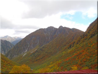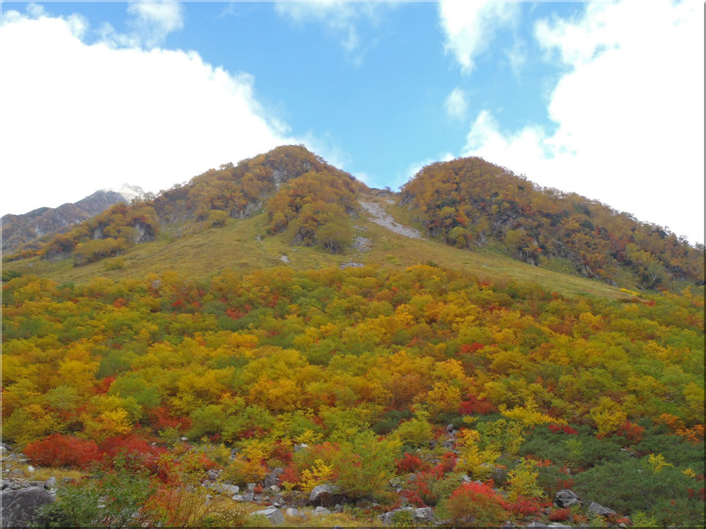 本谷右俣の上部のカールをズーム。あちらも紅葉はピークという感じです。