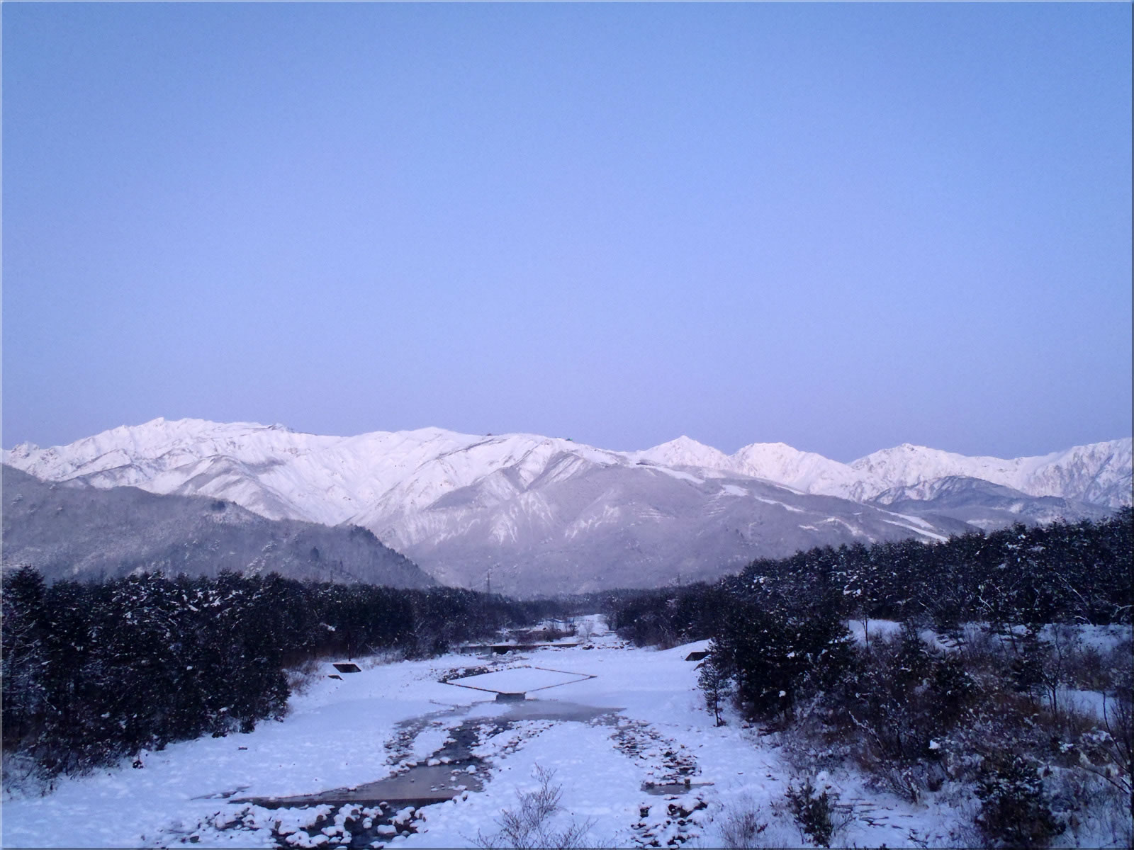 朝5時に自宅を出発し、八方尾根スキー場を目指します。スキー場の近くまで来てもまだ朝日が差していなくて、これから日の出を迎えるというタイミングでしたので、せっかくですので八方尾根の様子を日の出前と後で撮影してみることにします。