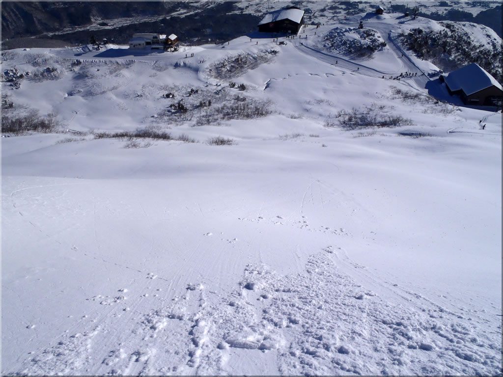 数人が南側斜面を気持ちよさそうに滑り降りていきましたので、私もまずは南側斜面を滑ってみることにします。11時18分、ではここからドロップイン。