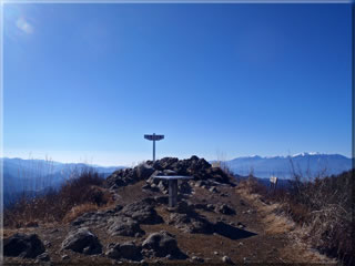 10時55分、守屋山山頂到着。このときは山頂には誰もいませんでした。風もそれほどありませんが、さすがに気温がかなり低く、日射しがあってもぽかぽかという感じではありませんでした。ではこの大展望をおかずにお昼とします。