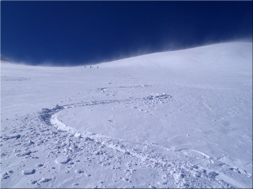 12時6分、岩場の下の辺りから滑降開始。