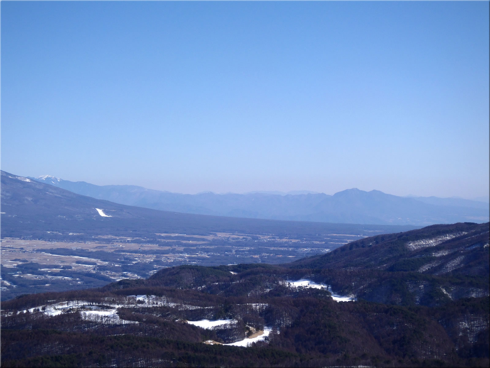 次の2枚は杖突峠から下る途中で撮影したもの。今冬はこの辺りで雪が降ることが少なく、市街地の雪はほとんど溶けてしまっています。