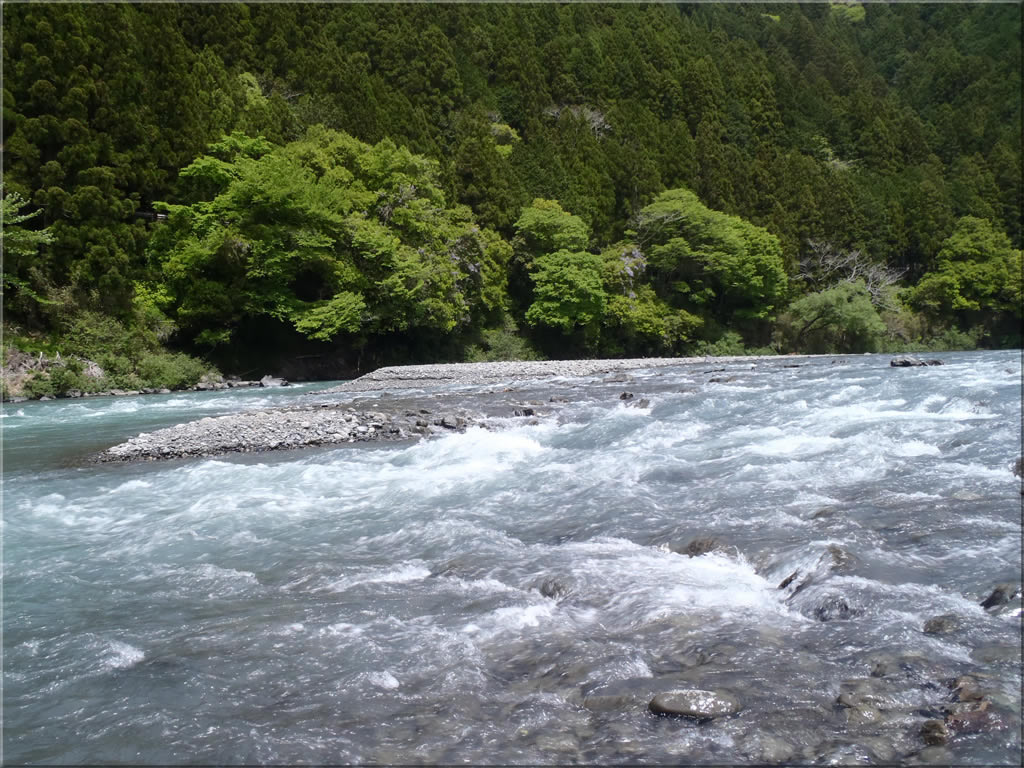 水量は昨年以上に多く、そのせいか少し白く濁っているように感じました。透明度は1mくらいでしょうか。浅瀬では底の石がきれいに見え爽快でした。