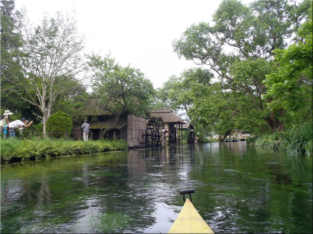 右側に水車小屋が見えたら、間もなく水車小屋の前を流れる蓼川(たでかわ)との合流地点になります。過去2回この川を下っていますが、いずれも蓼川をさかのぼれずにそのまま下っていってしまいましたので、今回は是非頑張って蓼川をさかのぼって、大王わさび農場に上陸してみたいと思います。