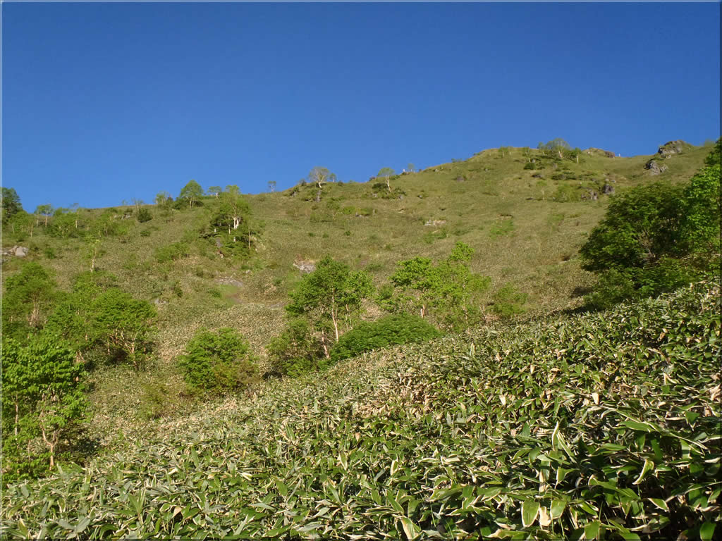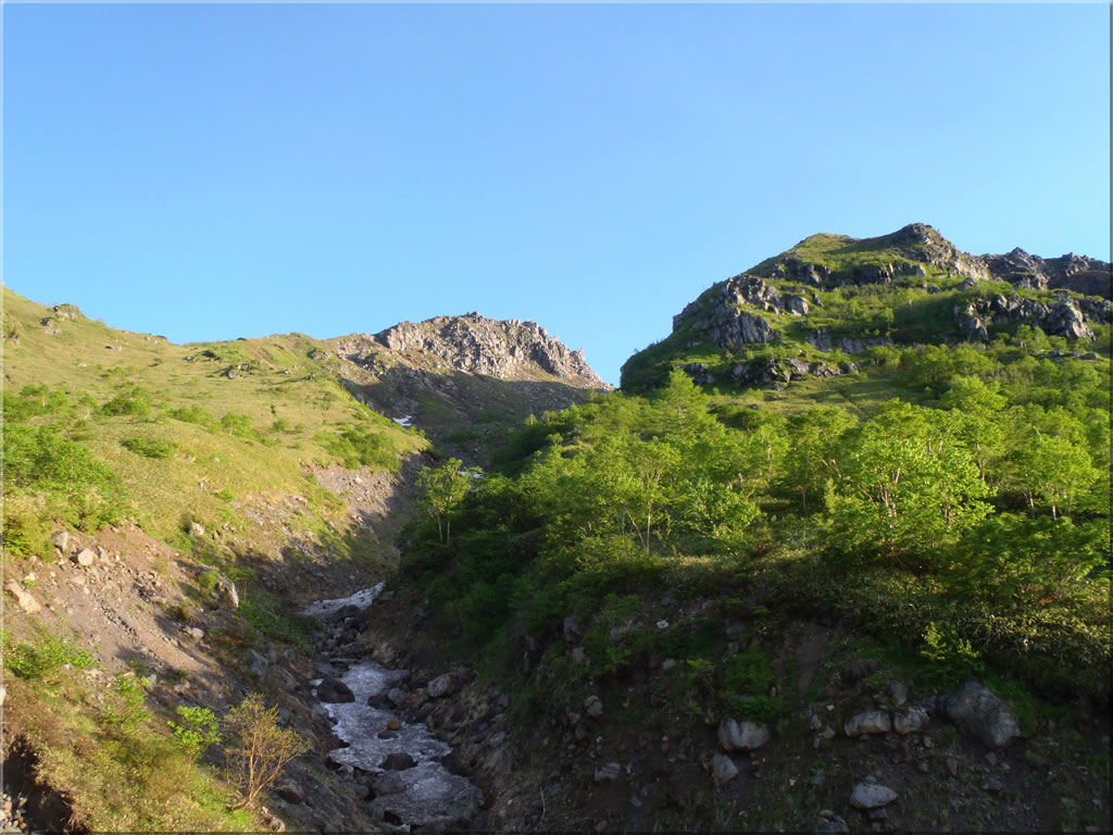今日の焼岳の見納めです。次にこの風景を見に来るのは、おそらく10月の紅葉の時期になることでしょう。(ちなみに昨年10月に今回と同じルートを歩いた時の様子はこちら。紅葉が本当に素晴らしかったです。)