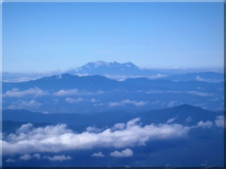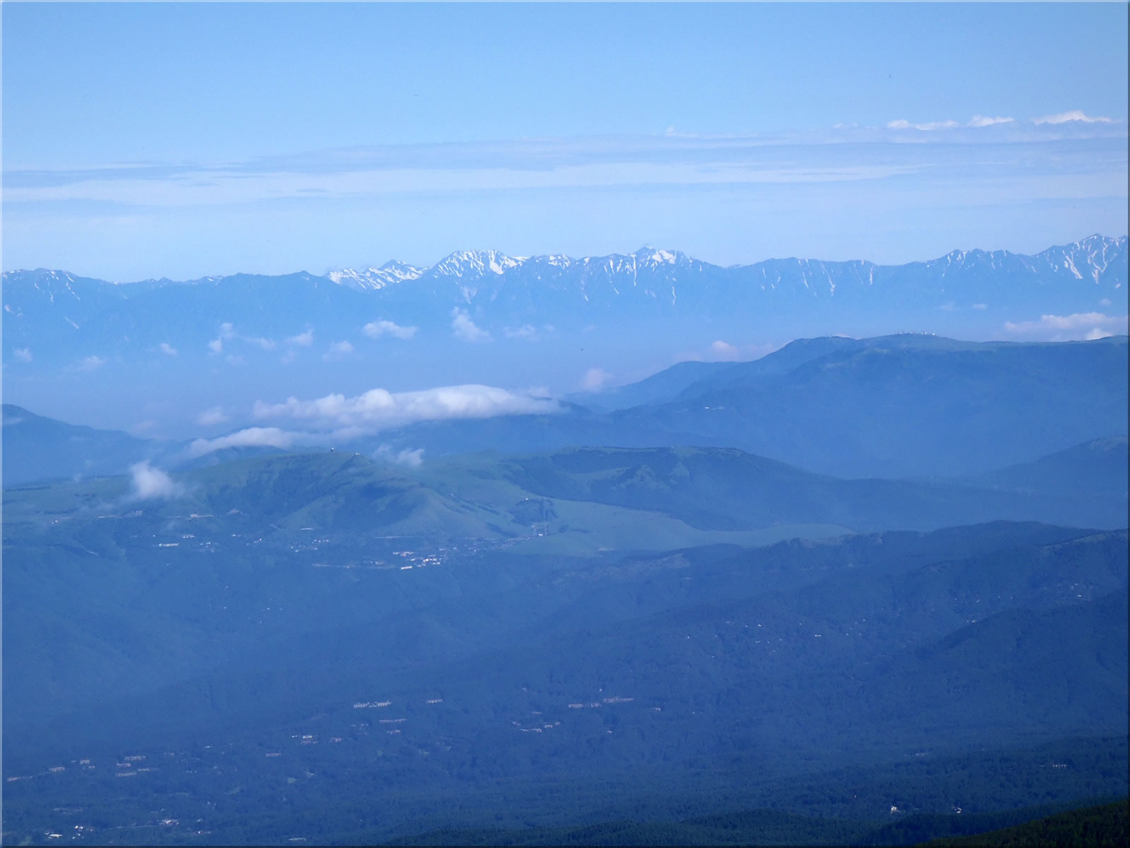 先ほどまで見えていた中央アルプス、北アルプスもかなりガスがかかってきてしまいました。今日は真夏の暑さと言うことで、ガスがかかるのも少し早めのようです。
