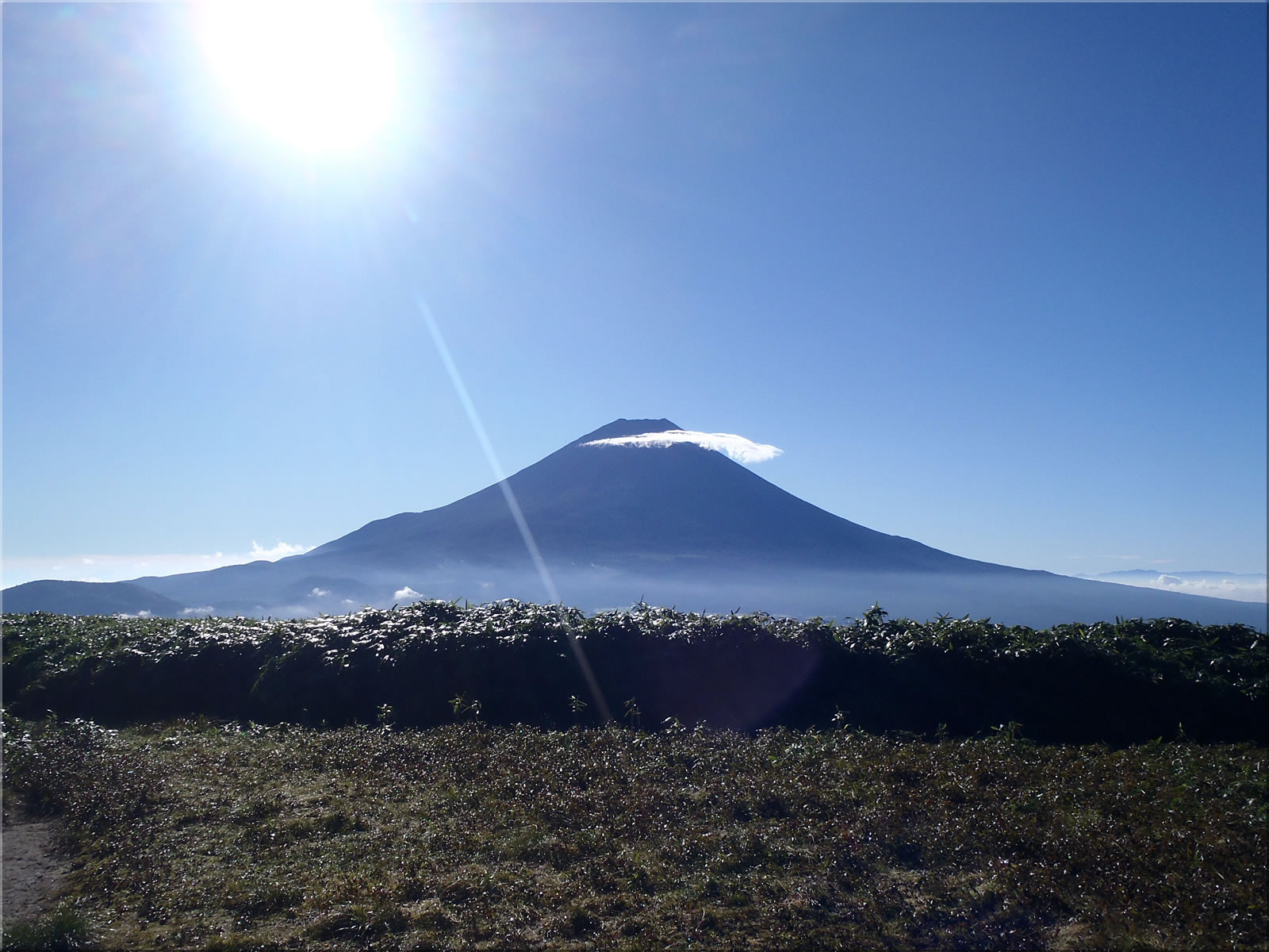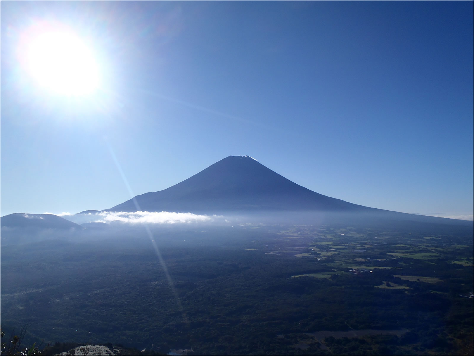 ここからは富士山がきれいに見えます。左側からガスが流れてきていますが、このガスは間もなく消えていきました。なおこの時間帯は富士山は逆光となり、ほとんどシルエットです。