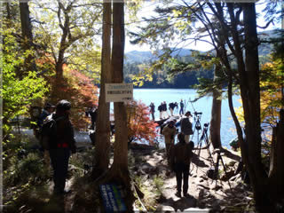 湖面が見える撮影ポイントには、いずれも数人のカメラマンが既に三脚を構えていました。その隣で撮影していきます。