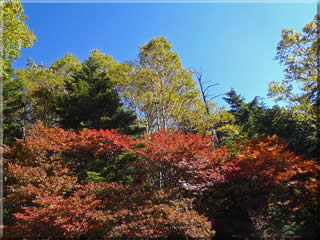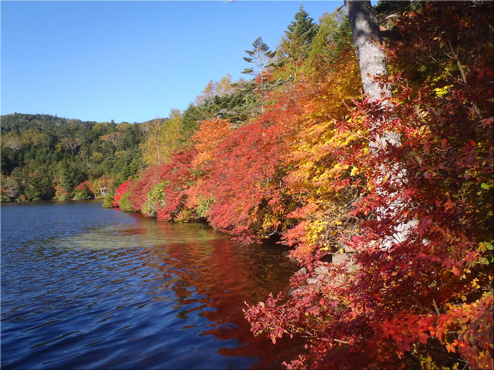 遅れていた白駒池のドウダンツツジの紅葉もそろそろ見頃を迎えていると聞き、高気圧に覆われて快晴が約束されたこの日の朝、白駒池に紅葉狩りに出かけてきました。向かう道路脇の木々の紅葉は、遅めだった昨年と比べても若干遅れ気味という感じでしたが、白駒池のドウダンツツジの紅葉はピーク少し手前という感じでとてもきれいでした。