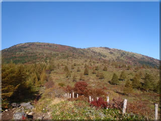 帰る途中、紅葉を手前に湯の丸山をぱちり。