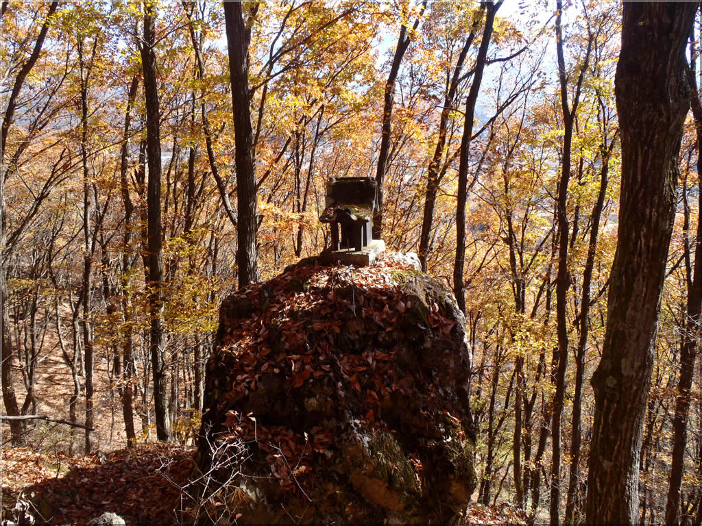 登山道から少し離れた大きな岩の上にも小さな祠がありました。