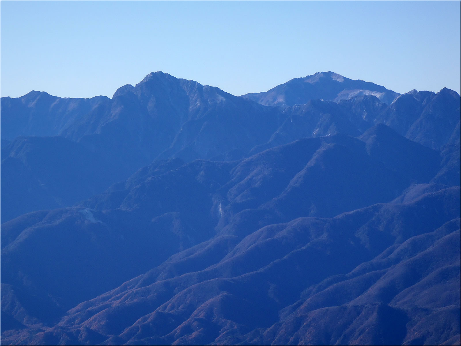 でもその寒さの分、今日は空気が澄んで遠くまで見通しがきき、最高の展望を楽しむことが出来ました(^^)。ではここからの展望を金峰山方面から右回りでご紹介。