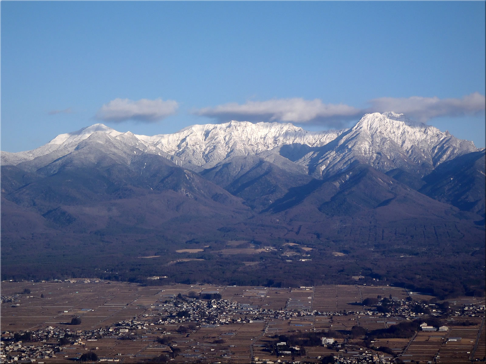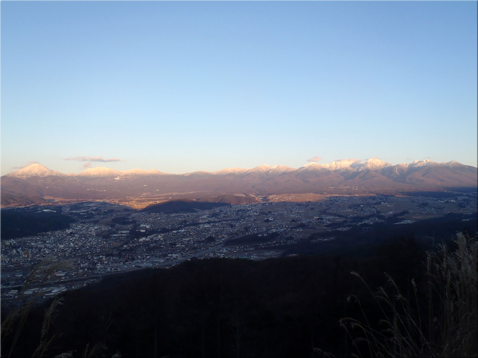 最初の写真は15時40分に撮影したものです。夕方になりだんだんと山の陰が伸び始めています。八ヶ岳も若干雲がかかっているところがありますが、おおむね快晴です。