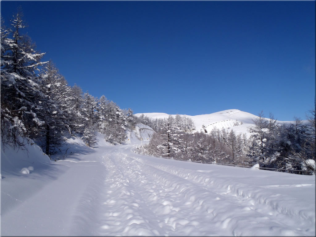 自宅を7時10分に出発し、旧道の和田峠に向かいます。当初はビーナスライン入口の除雪された部分に停めてそこから歩くつもりでしたが、車が上がった跡がありましたので行けるところまでと先に進んでみます。そして7時58分、なんとかゲート手前の場所まで車で来ることが出来ましたが、ただ道路上の積雪も30cm以上ありますので、普通乗用車ではここまで来ることは難しいと思います。