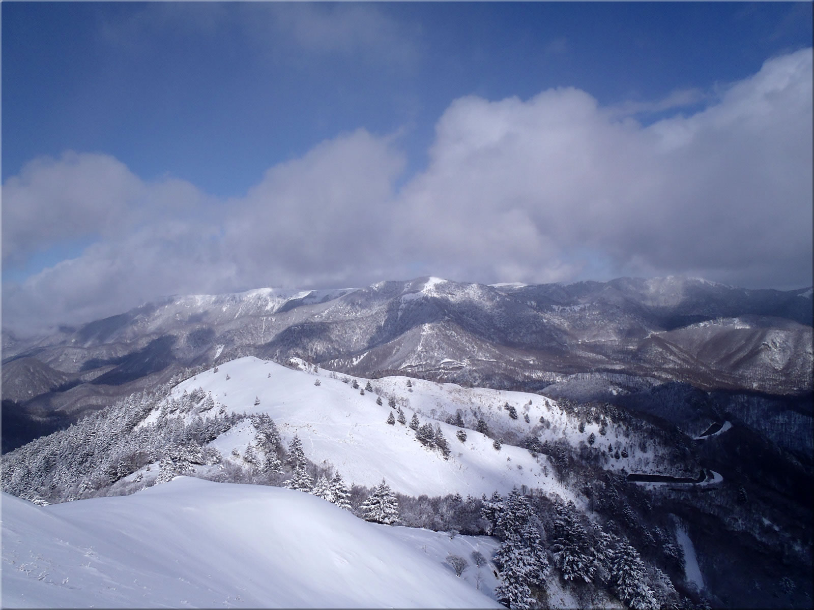 2日前に車山から見た三峰山が随分と真っ白に見え、天気の良い時に是非一度訪れたいと思っていたのですが、この日は朝起きてみたら予想外の快晴ということで、たまらずに(^^;