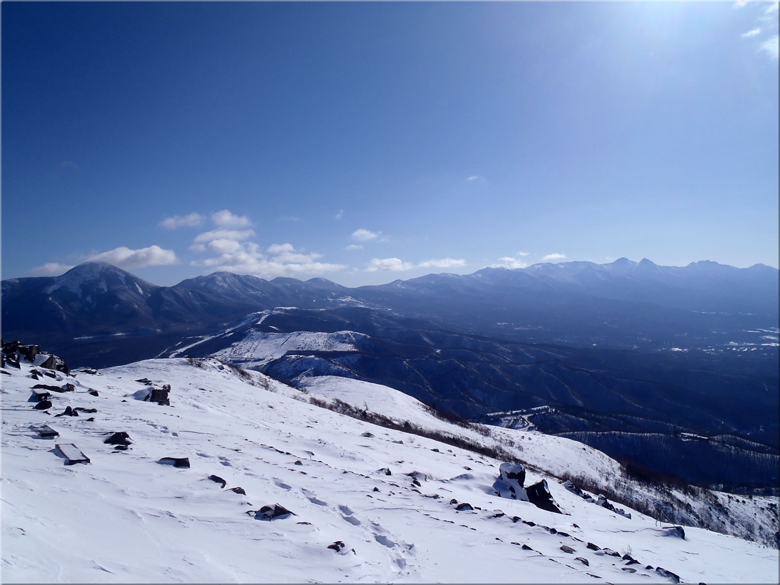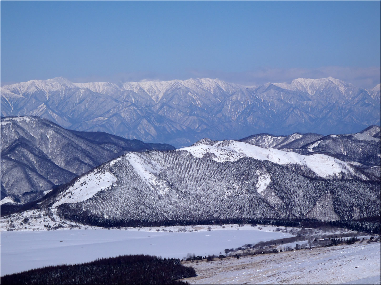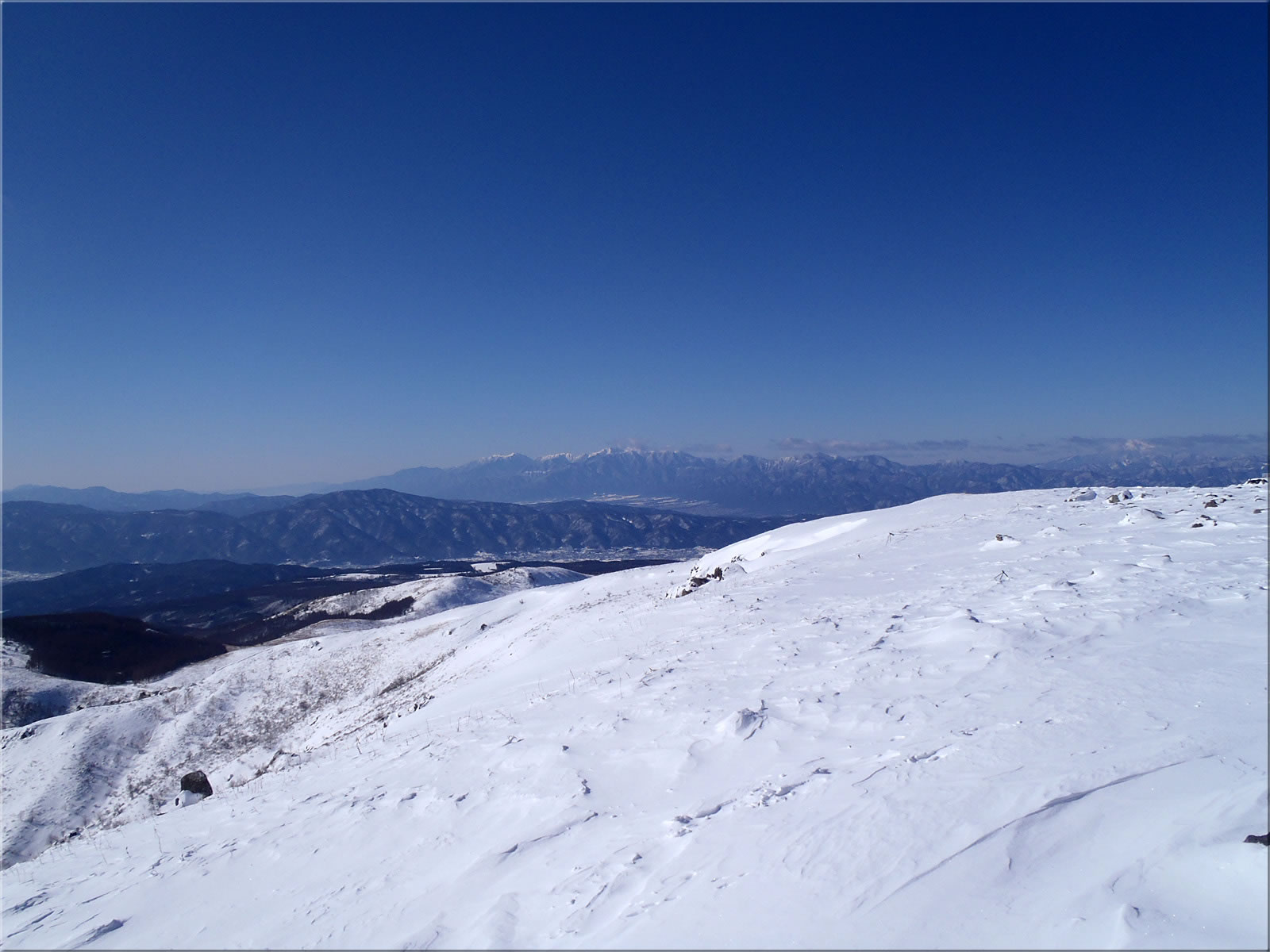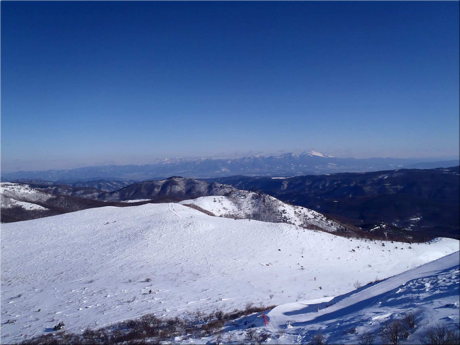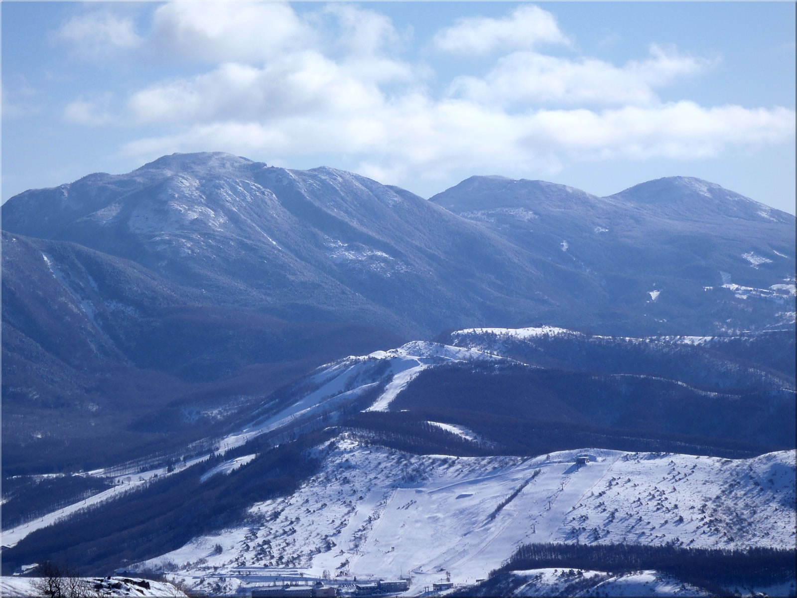 三峰山をズーム。こちらも10日ほど前に滑りに出かけましたが、雪が柔らかすぎて惨敗でした(^^;。今回の強風でおそらく、車山と同様にベースが出来たのではと期待しています。