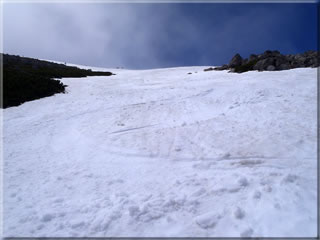 雪がぎりぎりつながっている部分を抜けると、その先はもうハイマツは気にしなくても良くなります。