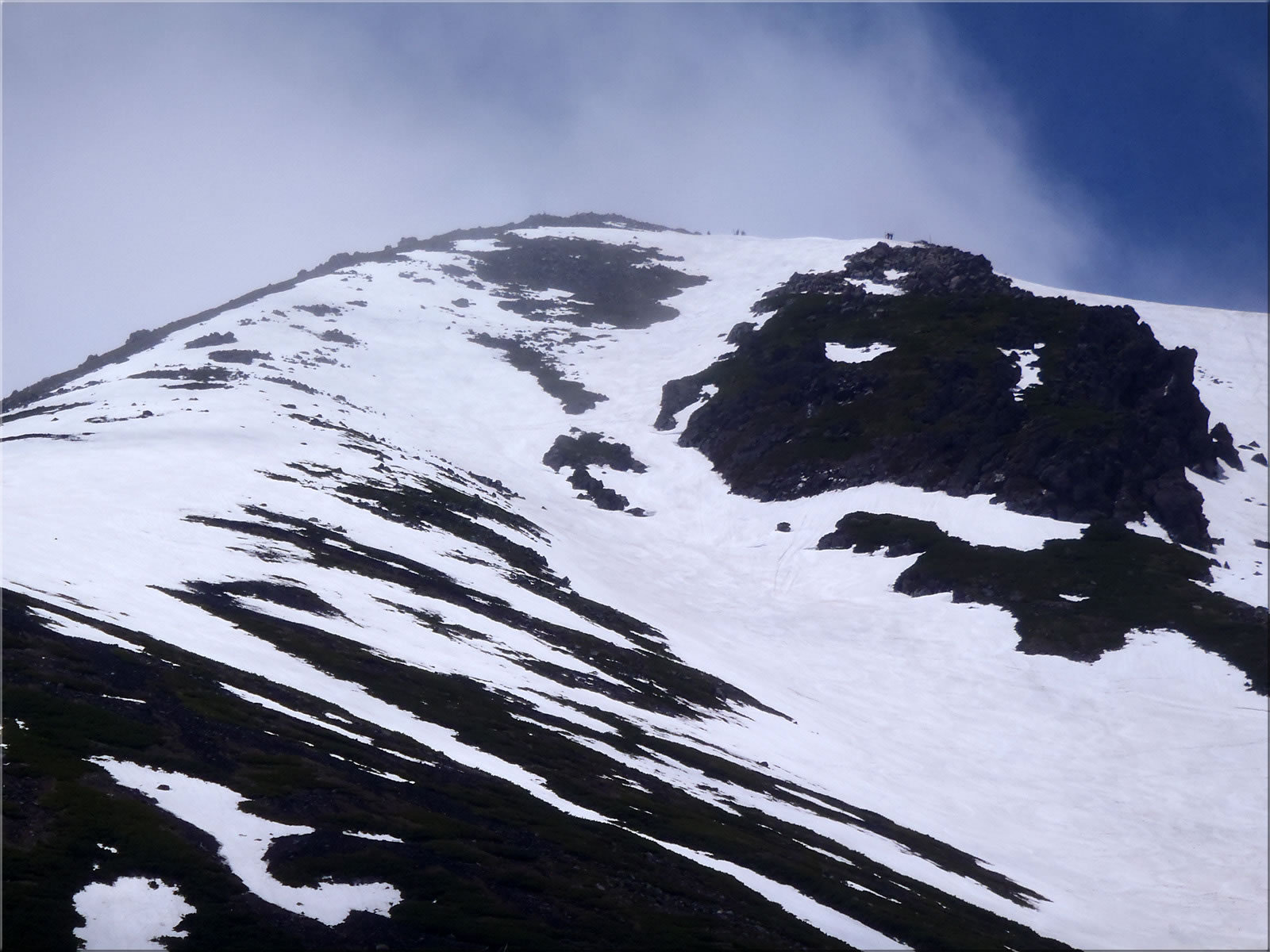 剣ヶ峰をズーム。ほぼ中央のラインを今滑り降りてきました。