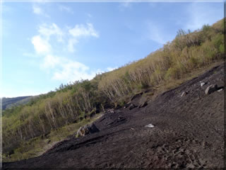 次の写真は今登ってきた斜面を見下ろしたもの。