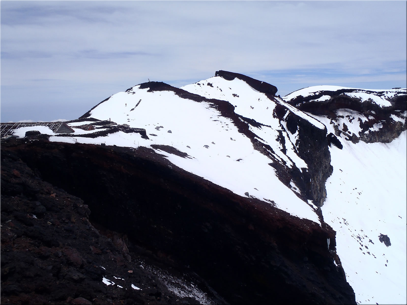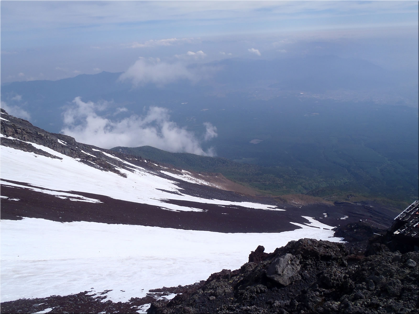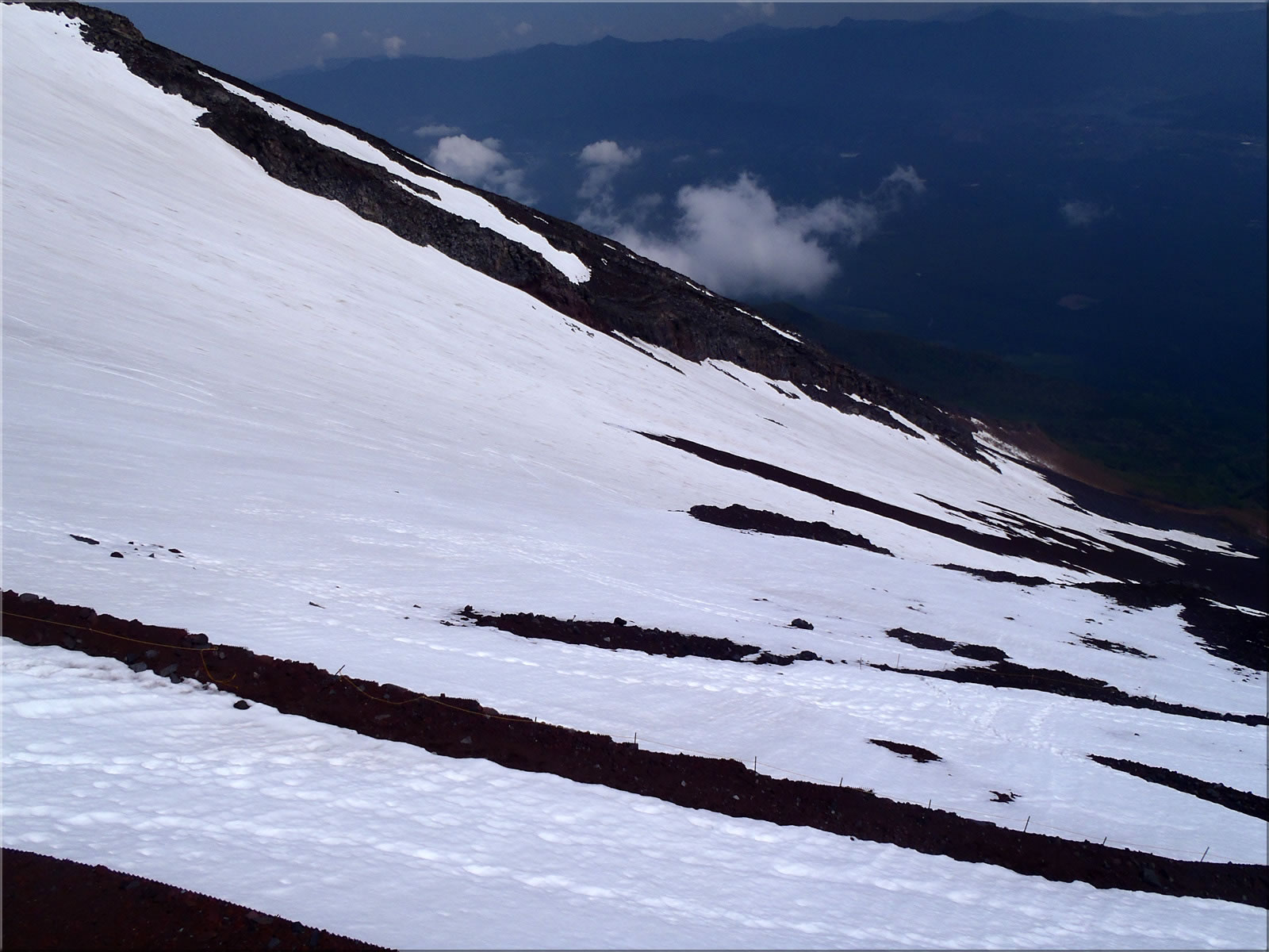 次の3枚はここから見た須走側斜面の様子。こちらの残雪もまだまだ豊富です。