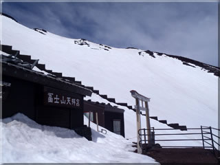 山頂手前の鳥居ですが、雪が多くまだ下をくぐることは出来ません。