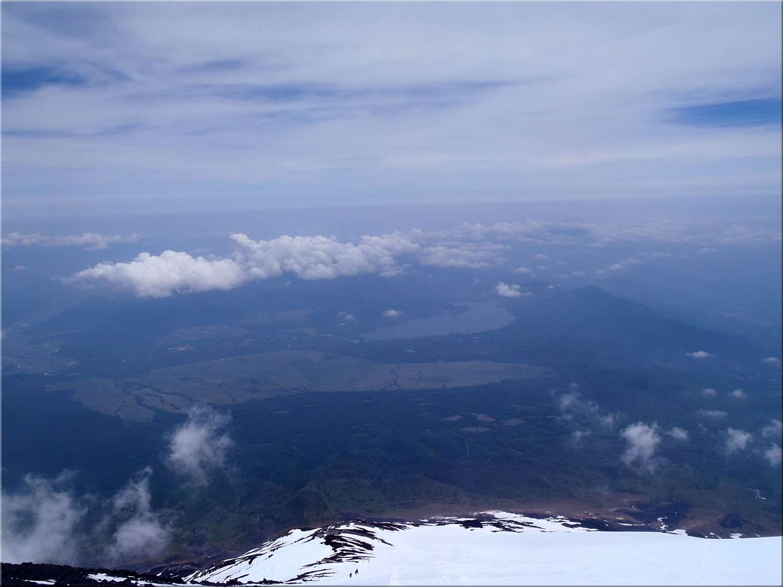 そしてのその向こう側の風景。上空には薄雲が広がり、眼下には少し雲も出ていますが、山中湖はきれいに見えていました。