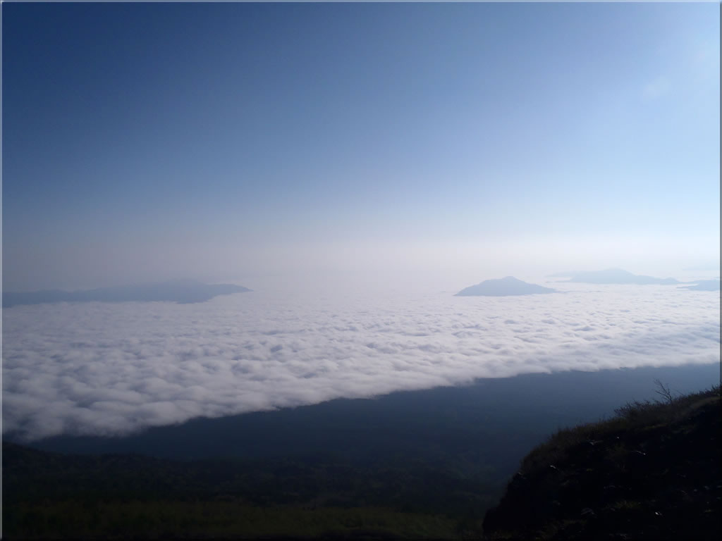 雲の上に顔を出している山が、海に浮かぶ島のように見えます。