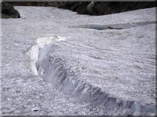 大きな亀裂も出来ていました。この時期に雪渓を滑る場合、ガスって見通しが悪い時は要注意です。