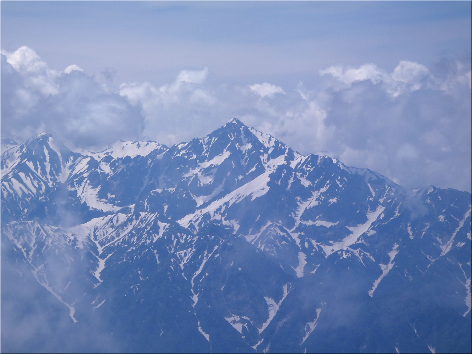 その右側の3つ並んで見えるピークをズーム。立山方面はまだ訪れたことが無く、剣岳以外の山はよく分かりません(^^;。