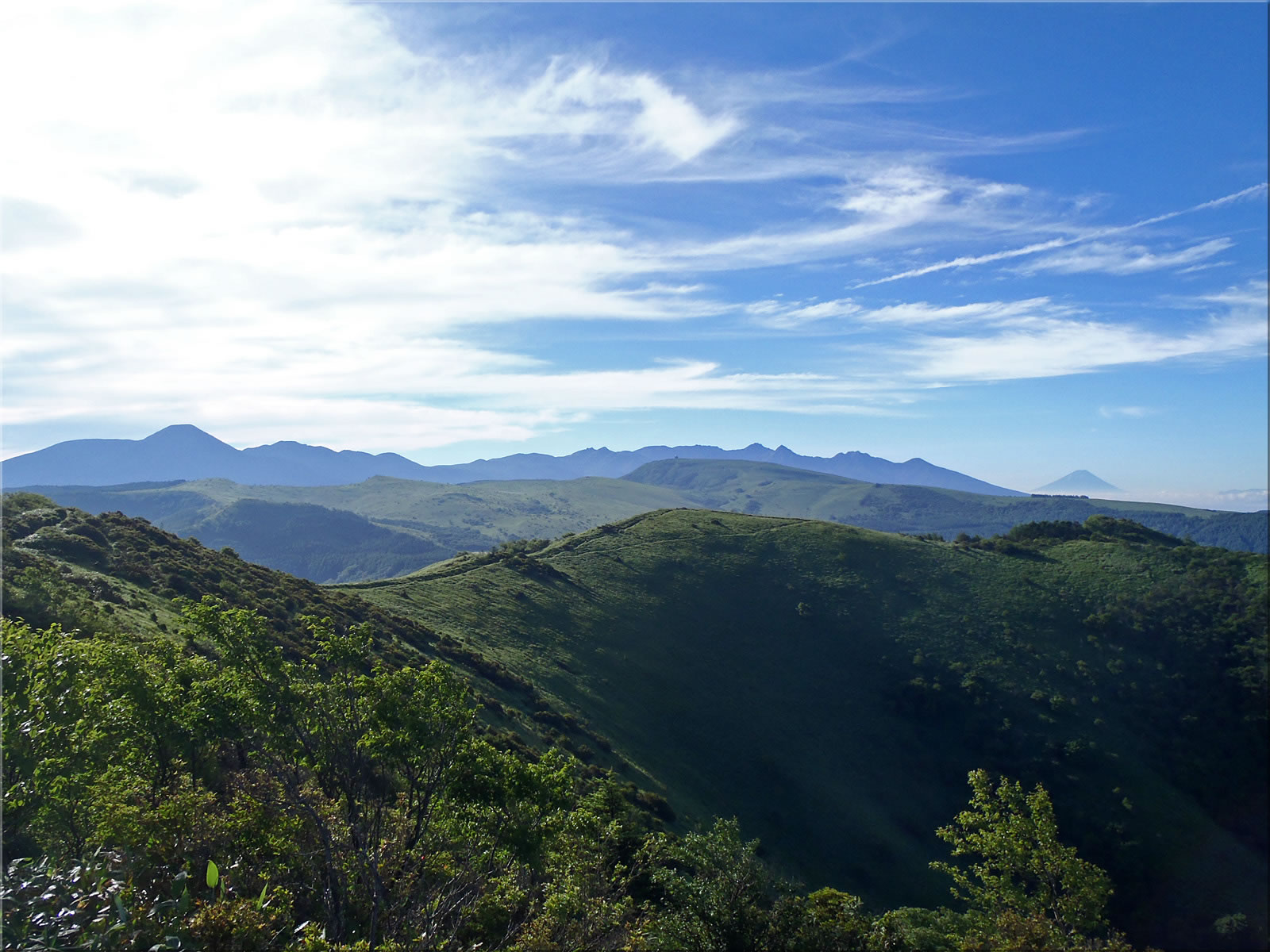 浅間山方面から八ヶ岳にかけての方向だけ、上空の雲が少し多めでした。