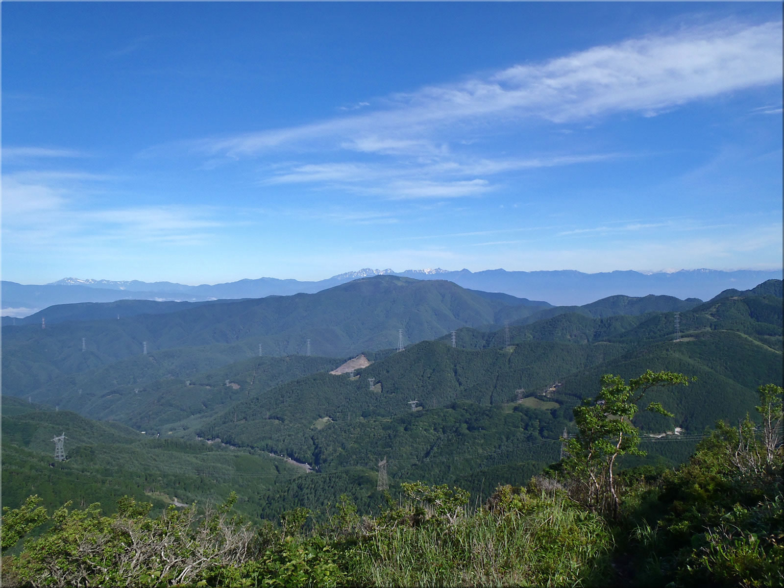 三峰山、そしてその向こうの美ヶ原をズーム。
