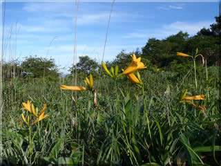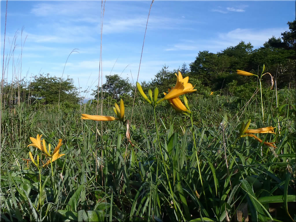 それにしても青い空と、緑の草原、そして鮮やかな黄色のニッコウキスゲは、例え一輪でも絵になります(^^)。